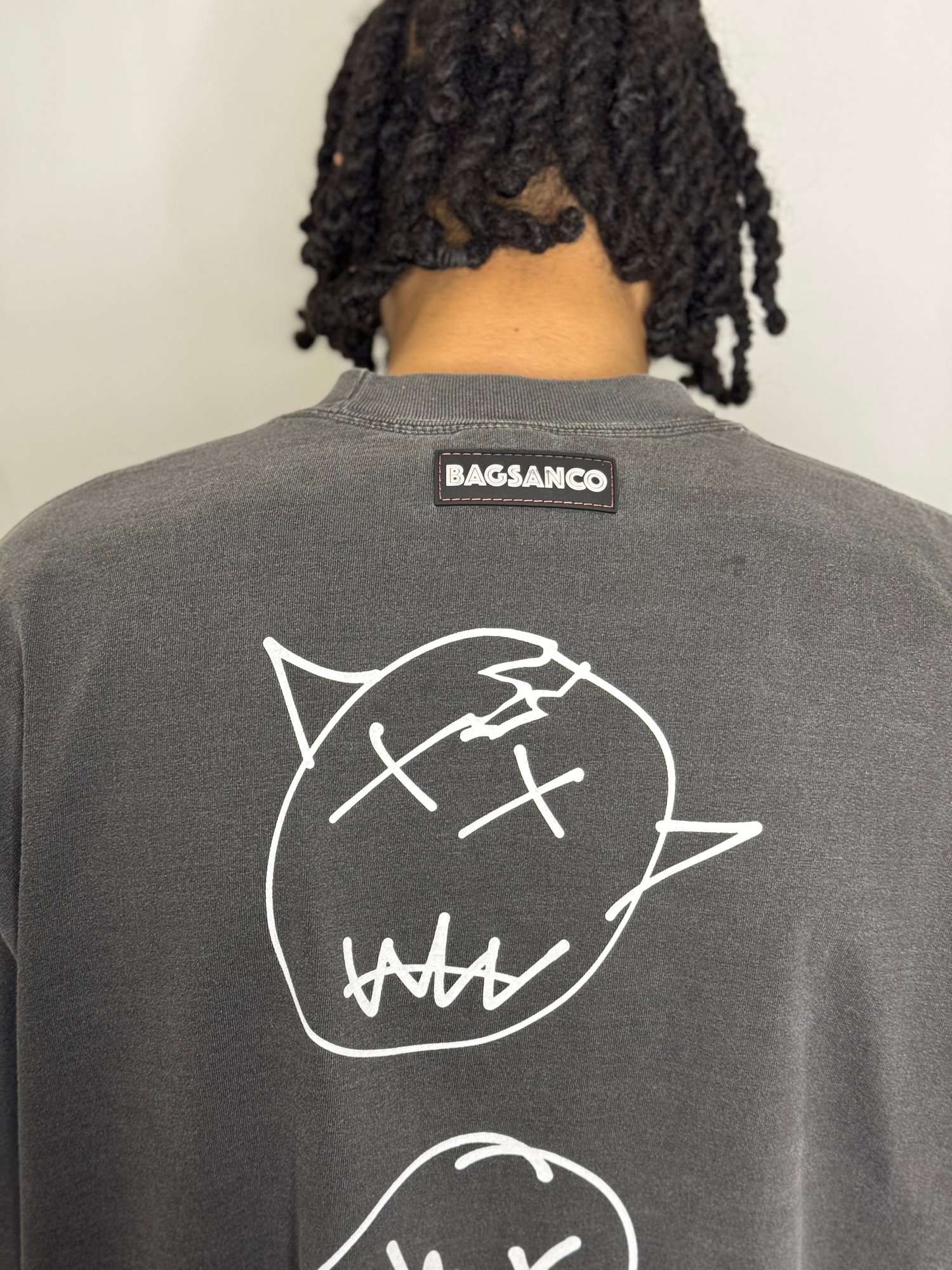 Model is 6'3 wearing a large drop shoulder shirt.