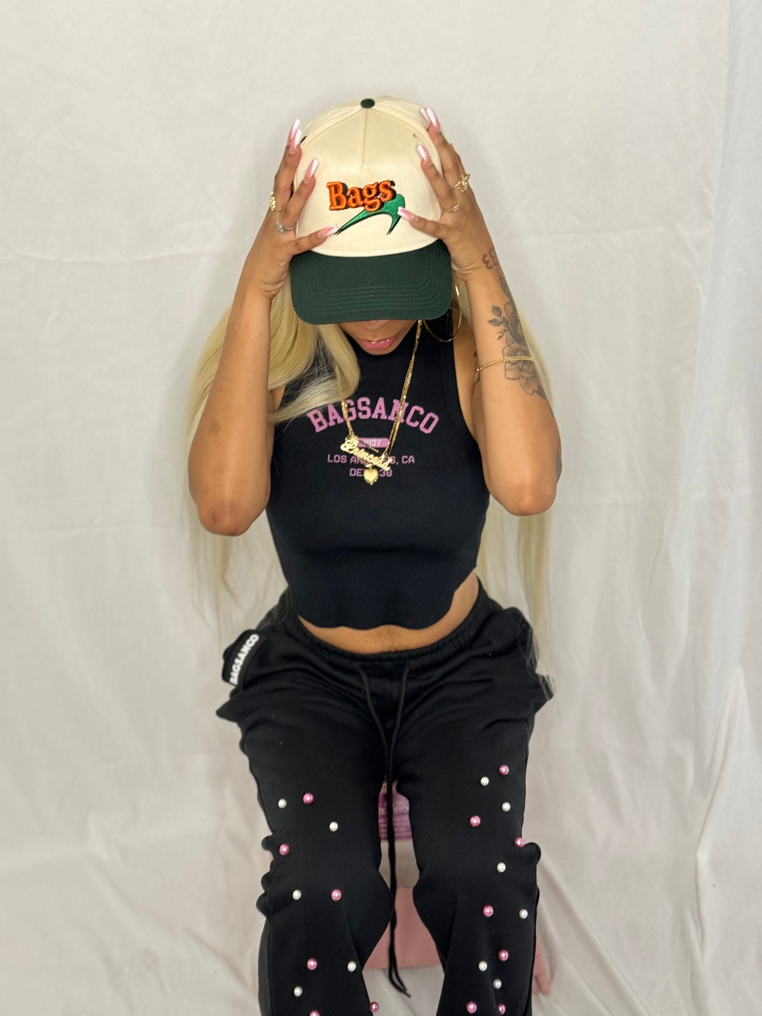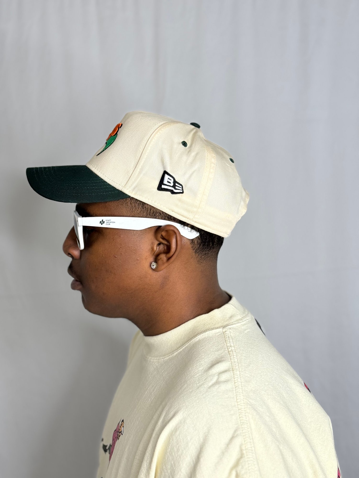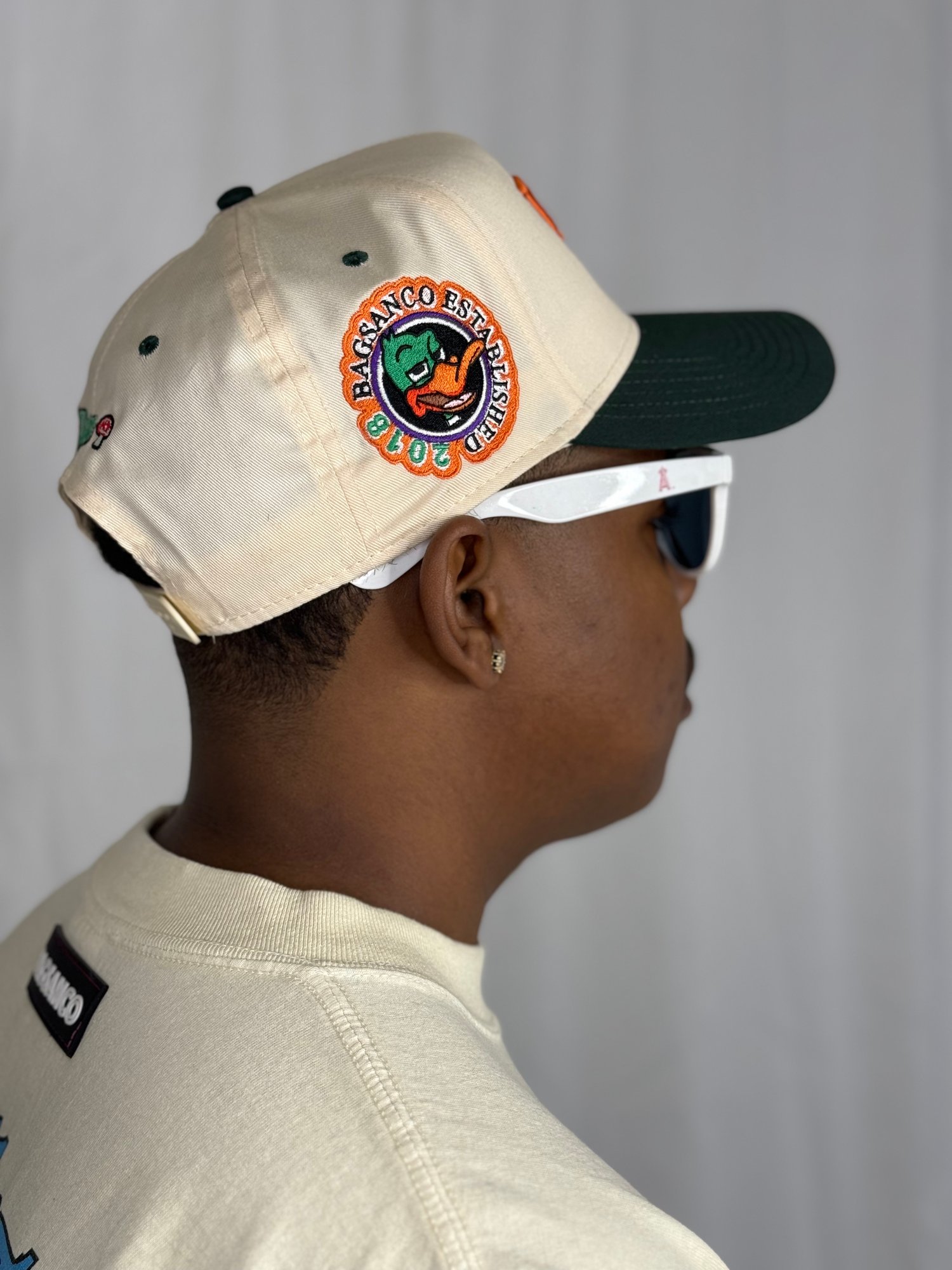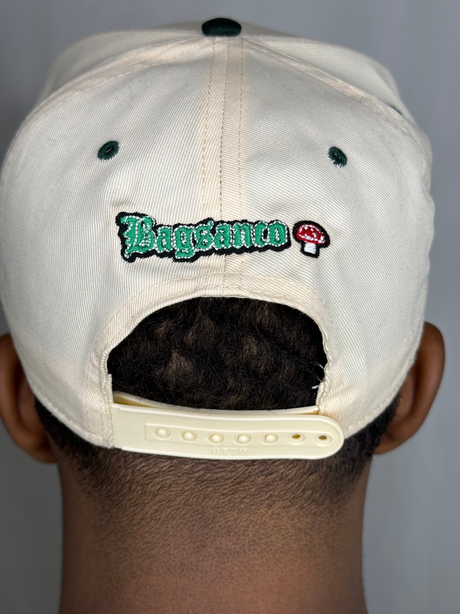 The "Buzzing Duck" Hat comes in classic cream with a green brim. With the signature Bags logo in 3D on the front, the hat contains three additional 3D logos on all sides of the hat.